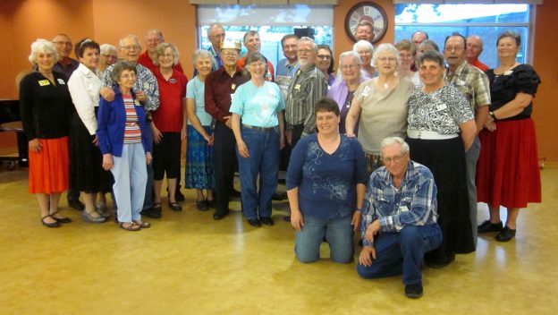 June 18, 2017 – North Country Plus Square Dance, Staples, Caller Abe Maier. Three squares with dancers from Rays Promenaders, Ocean Waves (Rockport, TX), North Country Plus, Friendly Squares, and County Line Squares were present (see photo above). Also present were County Line Squares Queen Susie and King Jim.