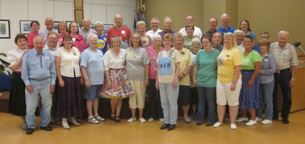 August 2, 2017 – Beaux & Belles “T-Shirt” Square Dance, St Cloud, Caller Larry Johansen. Four squares with dancers from Wadena Whirlaways, Single Circles, Koronis Nite Owls, County Line Squares, and Beaux & Belles (see photo above) were present.