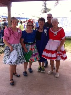 August 4, 2017 – Braham Pie Day Demo Square Dance, Braham, Caller Mike Driscoll, included County Line Squares dancers (see photo above).