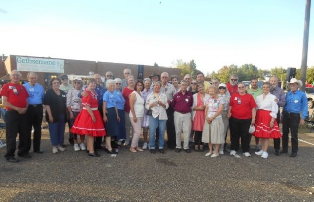 August 4, 2017 – Gethsemane Lutheran Church “End of Summer Block Party” Square Dance, Maplewood, Caller Larry Fruetel. Four squares (see photo above) had a fun time.