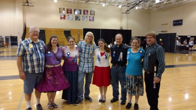 August 4-6, 2017 – 58th Wisconsin State Square & Round Dance Convention, Hartland, Featured Caller Dee Dee Dougherty. This was the first time they had a competition. Only three squares competed. Julie, Anna, Danielle, Pam Delaney, and John Bittner were part of the winning square (see photo above). Also in the square were Chuck Aldrich from Iowa and Jimmie and Daniel Burss from Wisconsin.