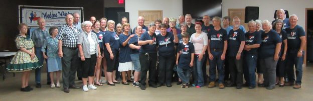 August 19, 2017 – Wadena Whirlaways spaghetti dinner fundraiser and square dance demo, Wadena, Caller Phil Miller. Participants are shown in the photo above.