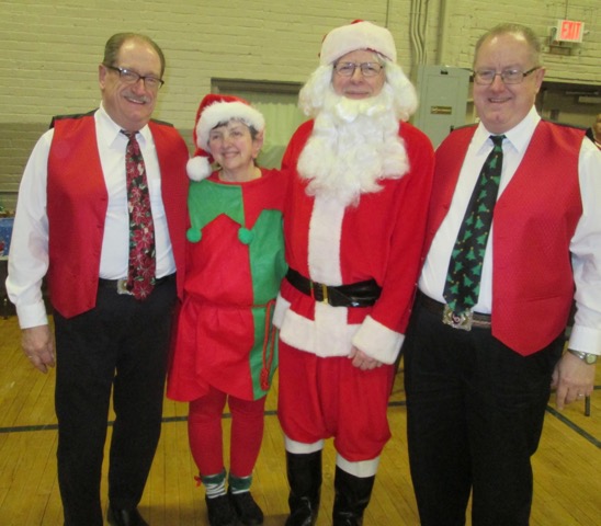 December 10, 2017 – Ar-Dale Dancers “Santa Sashay” Square Dance, White Bear Lake, Callers Doug and Don Sprosty, Cuer Ken LaBau. Santa and his elf welcomed the Sprosty Twins (see photo above).