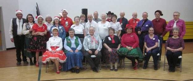 December 15, 2017 – St Peter Squares “Christmas” Square Dance, St Peter, Caller Abe Maier. Three squares with dancers from Kaleidoscope Squares, Steele Steppers, County Line Squares, and St Peter Squares were present (see photo above). Also present were USDA Plains Region Vice Presidents Floyd and Judy Engelhardt, County Line Squares Queen Susie, SDM Chair LeRoy Elfmann, and SDM Secretary Gael Zachman.
