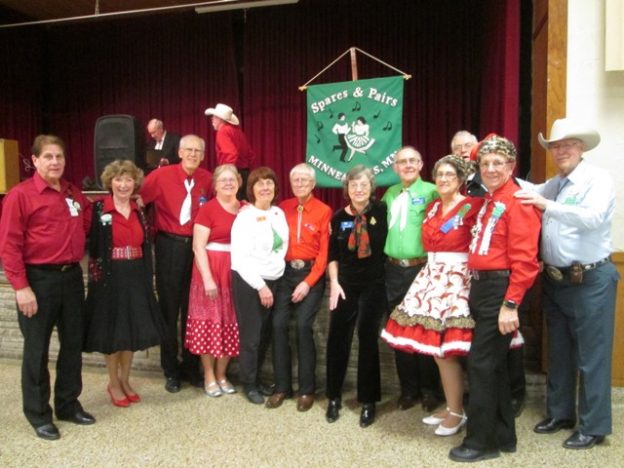 December 20, 2017 – Spares & Pairs “Jingle Bell Jubilee” Dinner/Square Dance, Bloomington, Caller Dick Rueter, Guest Caller Larry Fruetel, Cuer Ray Belanger. Westonka Whirlers (see photo above) retrieved their banner from Spares & Pairs.