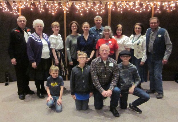 February 16, 2018 – Home School Children Demo, Brooklyn Park, Caller Abe Maier. Nine squares participated, including dancers from County Line Squares (see photo above).