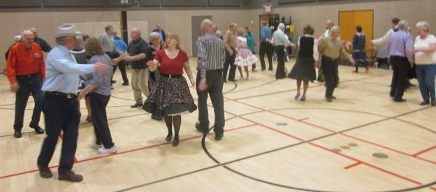 February 23, 2018 – Gospel Plus Square Dance, Hopkins, Caller Tom Allen, Cuer Sarah Klaphake. Five squares with dancers from Ar-Dale Dancers, Beaux & Belles, County Line Squares, Crystal Cross Trailers, Hot Foot Stompers, Single Circles, South Metro Stars, Spares & Pairs, Wandering Wheels, and Westonka Whirlers were present. Also present were Hot Foot Stompers Queen Rose, SDM Chair LeRoy Elfmann, SDM Secretary Gael Zachman, SDM Education Director Barry Downs, SDM Historian Al Martin, and SDM Membership Director Mary Kay Amberg.