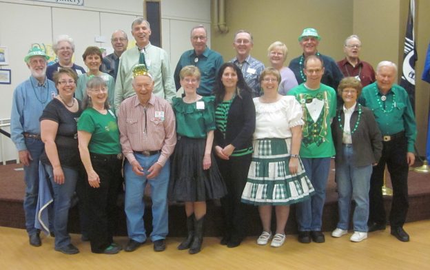 March 21, 2018 – Beaux & Belles “St. Patrick’s” Square Dance, St Cloud, Caller Tom Allen. Two squares with dancers from County Line Squares and Beaux & Belles (see photo above) dancing.