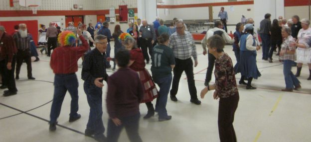 April 6, 2018 – County Line Squares “Bad Hair Night” Square Dance, Monticello, Caller Roger McNeil, Cuer Bernadette McNeil. Ten squares with dancers (see photo above) from Ar-Dale Dancers, Circle 8 Plus, County Line Squares, Dan’se P.A.C., Hot Foot Stompers, Koronis Nite Owls, Single Circles, South Metro Stars, Spares & Pairs, Wadena Whiralways, and Wandering Wheels were dancing. Present were Spares & Pairs Queen Jennifer and King Barry, County Line Squares Queen Susie and King Jim, newly crowed County Lein Squares Queen Gael and King Doug, Come Square Dance Chair Vince Dahlheimer, SDM Chair LeRoy Elfmann, SDM Vice Chair Linda Brotherton, SDM Secretary Gael Zachman, SDM Education Director Barry Downs, SDM Historian Al Martin, SDM Membership Director Mary Kay Amberg, Caller Andy Flint, Caller Mark Helfter, and Caller Abe Maier. Koronis Nite Owls and Wadena Whirlaways claimed County Line Squares banners.