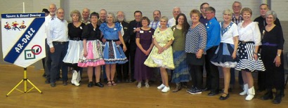 April 8, 2018 – Ar-Dale Dancers “Prom Promenade” Square Dance, White Bear Lake, Caller Roger McNeil, Cuer Ken LaBau. Another April snow! Really, enough already. But inside was warm and dry and Roger McNeil called a lively dance to 10 ½ squares, representing 11 different organizations. Celebrities in attendance were SDM Education Director Barry Downs, SDM Membership Director Mary Kay Amberg, Come Square Dance Chair Vince Dahleimer, and Assistant Editor of the Round Up Steve Huntsman. Royalty in attendance included Marlene and Roger Sorenson Queen and King from Ar-Dale Dancers, Queen Lisa Caspersen from Friendly Twirlers, Queen Rosemary Valentine from Hotfoot Stompers and King Barry Downs from Spares and Pairs. One of the highlights of our dance was seeing some of our former royalty parading around the crowd, and then crowning our own 2018-2019 King and Queen Rick Larson and Tami Jelinek. Cake was served in honor of our King and Queen. Hot Foot Stompers (see photo above) earned a large banner (but they already had one) and Dakota Grand Squares claimed an Ar-Dale Dancers banner.
