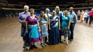 The 67th National Square and Round Dance Convention was held in Kansas City, MO, June 27-30, 2018. Ninety-four Minnesotans out of approximately 3,150 dancers were present. The photo above was taken at the evening Mainstream dance on June 30 with national callers and the Ghost Riders Band.