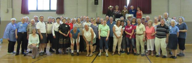 July 8, 2018 – Ar-Dale Dancers Square Dance “Mainstream” Workshop, White Bear Lake, Caller Larry Fruetel. Six squares with dancers from eight organizations were present (see photo above).
