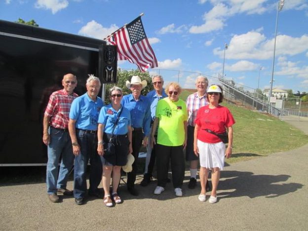 September 16, 2018 – Smoke Signals Charity Auto Show Square Dance Demo, Prior Lake, Caller Larry Fruetel. South Metro Stars (some not in photo) and Larry Fruetel marketed square dancing.