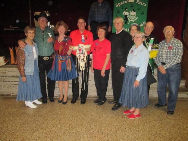 September 26, 2018 – Spares & Pairs “Western Night” Square Dance, Bloomington, Caller Dick Rueter, Cuer Robin Fryman. Westonka Whirlers retrieved their banner from Spares and Pairs (some missed the photo).