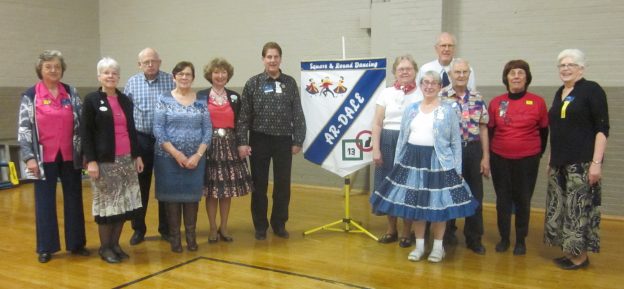 January 13, 2019 – Ar-Dale Dancers “Fifties” Square Dance, White Bear Lake, Caller Larry Fruetel, Cuer Ken LaBau. Dancers from Westonka Whirlers (already have an Ar-Dale Dancers banner – see photo above), Spares & Pairs, South Metro Stars, Single Circles, Hot Foot Stompers, Friendly Twirlers, Dan’se P.A.C., Dakota Grand Squares, County Line Squares, Cambridge Corners, and Ar-Dale Dancers were present. Also present were Friendly Twirlers Queen Michelle, Ar-Dale Dancers Queen Tami and King Rick, CSD Chair Vince Dahlheimer, CSD Treasurer Bernadette McNeil, SDM Executive Director LeRoy Elfmann, SDM Historian Al Martin, SDM Marketing Director Dee Scott, and SDM Membership Director Mary Kay Amberg.