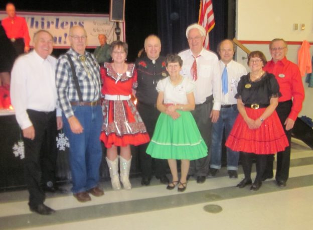 December 21, 2019 – Westonka Whirlers “Tis the Season” Square Dance, Mound, Callers Tom Allen and Dick Rueter, Cuer Sarah Klaphake. Ar-Dale Dancers, County Line Squares, Crystal Cross Trailers, Dakota Squares, Hot Foot Stompers, Jolly Promenaders, Single Circles, Spares & Pairs, TMF Squares, and Triple T danced with Westonka Whirlers. County Line Squares Queen Carmen, Jolly Promenaders Queen Cindy and King Dan, and Spares & Pairs Queen Evonne and King Mel were present. Also present were Come Square Dance Chair Vince Dahlheimer, SDM Chair Barry Downs, SDM Vice Chair LeRoy Elfmann, SDM Treasurer Gael Zachman, SDM Historian Al Martin, SDM Marketing Director Dee Scott, and SDM Membership Director Mary Kay Amberg. Hot Foot Stompers retrieved their banner (see photo above), County Line Squares and Spares & Pairs already have a Westonka Whirlers banner (see photos below).