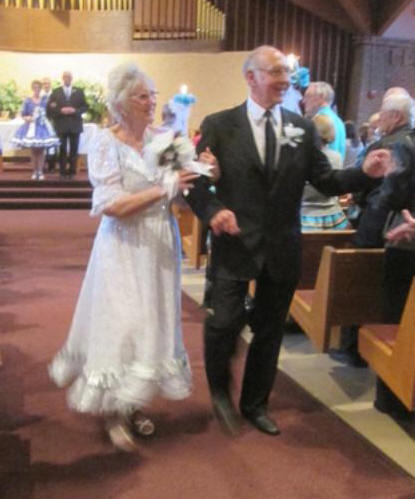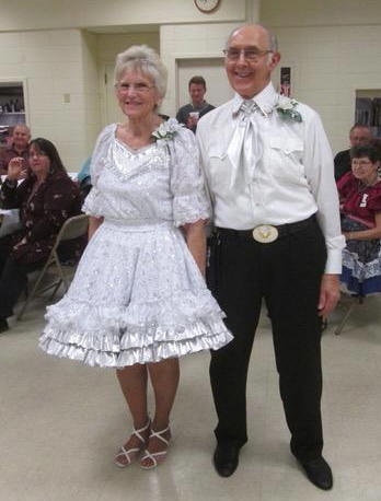 November 3, 2019 – Evonne Herman and Melvin Kirchenwitz Wedding, Golden Valley, Caller Tom Allen, Cuer Sarah Klaphake. Evonne and Mel after the wedding ceremony (see photo above).