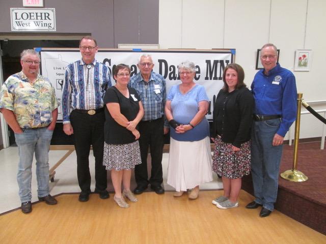 July 28, 2019 – SDM “5th Anniversary” Summer Festival Square Dance, General Membership Meeting, and Awards Presentation, Callers Tom Allen, Vic Diller, Andy Flint, Monte Guenzler, and Charlie Huhtala, Cuers Sarah Klaphake and Donna Stone. SDM directors are Chair Barry Downs, Vice Chair LeRoy Elfmann, Treasurer Gael Zachman, Secretary Linda Carlson, and Education Director Terry Orton. SDM staff officers are Historian Al Martin, Marketing Director Dee Scott, and Membership Director Mary Kay Amberg.