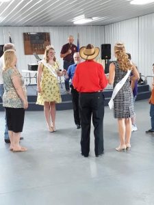 July 21, 2019 – North Country Plus Square Dance, Staples, Caller Abe Maier. Dancers from Wadena Whirlaways, Rays Promenaders, North Country Plus, Friendly Squares, and County Line Squares were present. Also present were County Line Squares Queen Carmen, SDM Chair Linda Brotherton, SDM Treasurer Gael Zachman, SDM Education Director Terry Orton, and SDM Executive Director LeRoy Elfmann.
