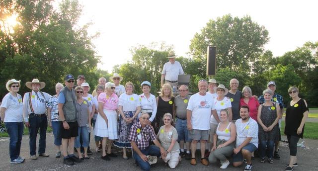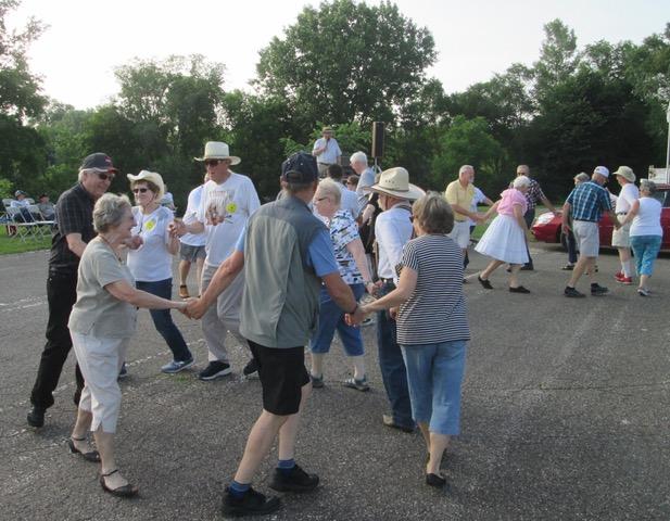 June 21, 2019 – Westonka Whirlers “Summer’s Here!” Square Dance, Mound, Caller Dick Rueter, Cuer Sarah Klaphake, Guest Caller Tom Allen. Dancers from Ar-Dale Dancers, County Line Squares (see photo above), Crystal Cross Trailers, Dakota Grand Squares, ETTA Square & Rounds, Gnat Boxers (Wooster, OH), Hot Foot Stompers, South Metro Stars, Spares & Pairs joined the Westonka Whirlers dancers. Ar-Dale Dancers Queen Kathleen, County Line Squares Queen Carmen and King David, Westonka Whirlers Queen Debbie and King Fred, SDM Treasurer Gael Zachman, SDM Executive Director LeRoy Elfmann, SDM Historian Al Martin, SDM Marketing Director Dee Scott, and SDM Membership Director Mary Kay Amberg were present.