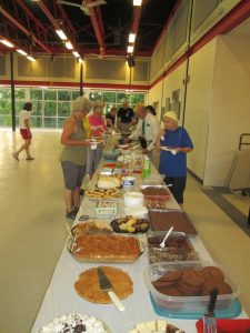 July 10, 2018 – Silver Treads Square Dance, Rochester, Caller Mary Mehus. Four squares with dancers from County Line Squares and Silver Treads were present (see photo above).