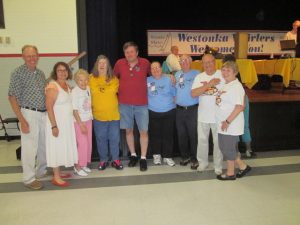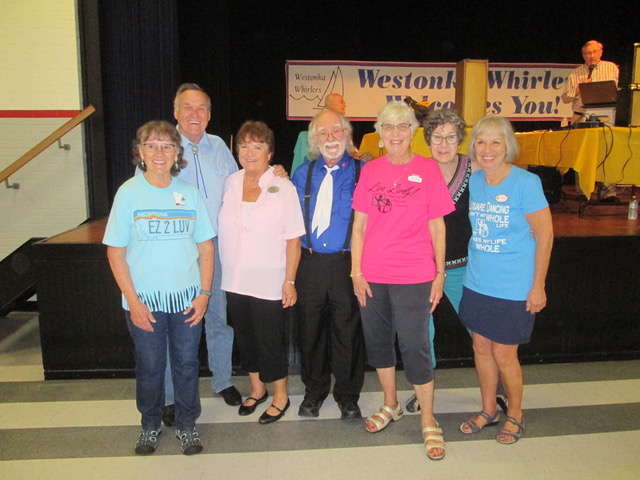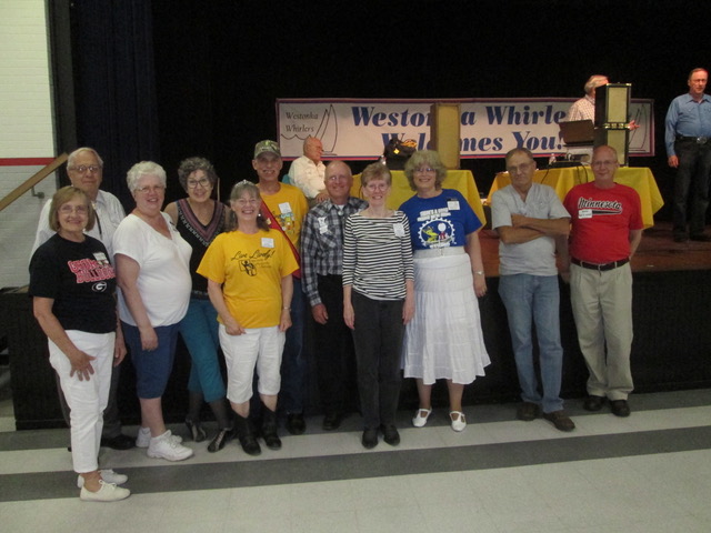 June 22, 2018 – Westonka Whirlers “Crazy Hats and T-Shirts” Square Dance, Mound, Caller Dick Rueter, Guest Caller Tom Allen, Cuer Ray Belanger. Ten squares with dancers from Beaux & Belles, County Line Squares, Crystal Cross Trailers, Dakota Grand Squares, Danc’n Singles (Smyrna, GA), Hot Foot Stompers, Pleasant Hill Promenaders (Southaven, MS), Single Circles, South Metro Stars, Spares & Pairs, Triple T Squares, Wandering Wheels, and four from Westonka Whirlers! Also present were County Line Squares Queen Gael and King Doug, Dakota Grand Squares Queen Rose Marie and King John, Hot Foot Stompers Queen Coni, Spares & Pairs Queen Jennifer and King Barry, Westonka Whirlers Queen Anita and King Bill, SDM Chair LeRoy Elfmann, SDM Secretary Gael Zachman, SDM Education Director Barry Down, SDM Historian Al Martin, and SDM Membership Director Mary Kay Amberg. What a wonderful crowd!
