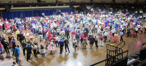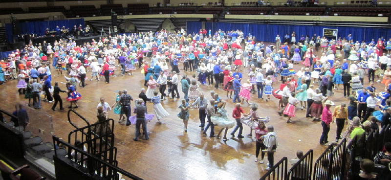 The 67th National Square and Round Dance Convention was held in Kansas City, MO, June 27-30, 2018. Ninety-four Minnesotans out of approximately 3,150 dancers were present. The photo above was taken at the evening Mainstream dance on June 30 with national callers and the Ghost Riders Band.