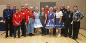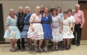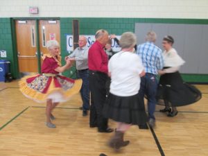 April 28, 2018 – South Metro Stars Square Dance, Burnsville, Caller Lanny Weaklend. Six squares with dancers from Country Twirlers, County Line Squares, Crystal Cross Trailers, Dakota Grand Squares, Hot Foot Stompers, South Metro Stars, Spares & Pairs, Square & Twirl, TMF Squares, Wandering Wheels, and Westonka Whirlers (see photo above) were present. Also present were County Line Squares Queen Gael and King Doug, Hot Foot Stompers Queen Coni, Federation President Michelle Jensen, SDM Chair LeRoy Elfmann, SDM Secretary Gael Zachman, SDM Marketing Director Dee Scott, and SDM Membership Director Mary Kay Amberg.