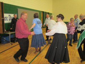 May 4, 2018 – County Line Squares “Let’s Go Fishing” Square Dance, Monticello, Caller Abe Maier, Cuer Sarah Klaphake. Eight squares with dancers from Ar-Dale Dancers, County Line Squares, ETTA Square & Rounds, Hot Foot Stompers, Koronis Nite Owls, Single Circles, Spares & Pairs, and Westonka Whirlers were in attendance (some are included in the photo above). Present were Spares & Pairs Queen Jennifer and King Barry, County Line Squares Queen Gael and King Doug, SDM Chair LeRoy Elfmann, SDM Secretary Gael Zachman, SDM Education Director Barry Downs, and SDM Marketing Dee Scott. Banners retrieved by Beaux & Belles, Single Circles, Spares & Pairs, and Westonka Whirlers. Koronis Nite Owls could have claimed a banner but they already have County Line Squares.