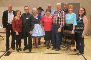 March 24, 2018 – Saturday Fun Nite Square Dance, Fargo, Caller Charley Huhtala. Two squares with dancers from Country Twirlers, County Line Squares, Dakota Grand Squares, L & M Squares, and Valley Stars (see photo above) danced. County Line Squares Queen Susie, SDM Chair LeRoy Elfmann, and SDM Secretary Gael Zachman were present. County Line Squares returned and claimed a Saturday Fun Nite banner.