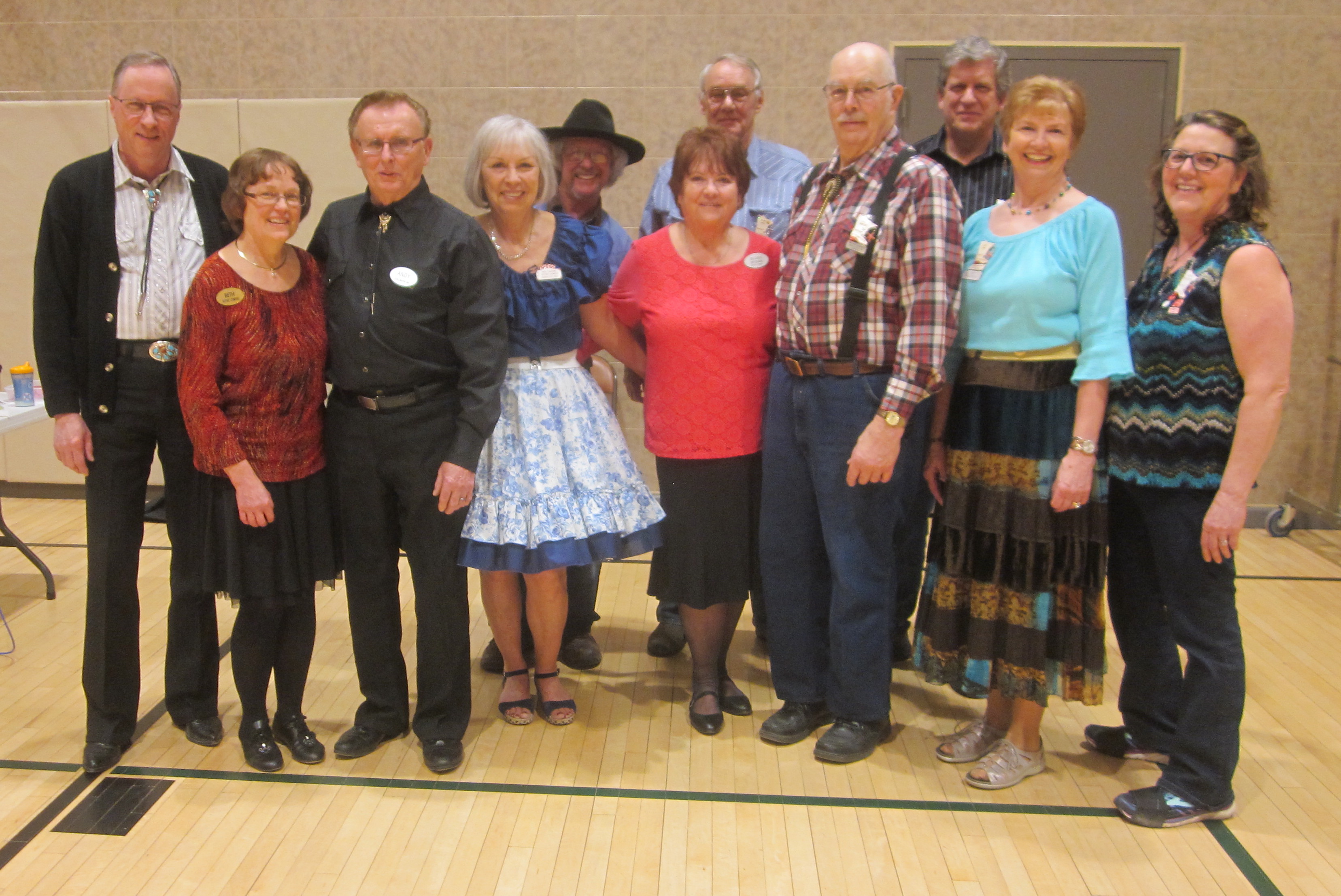 March 16, 2018 – Rays Promenaders “Irish Night” Square Dance, Brainerd, Caller Abe Maier. Two squares with dancers from Wadena Whirlaways, Rays Promenaders, Friendly Squares, and County Line Squares were present (see photo above).