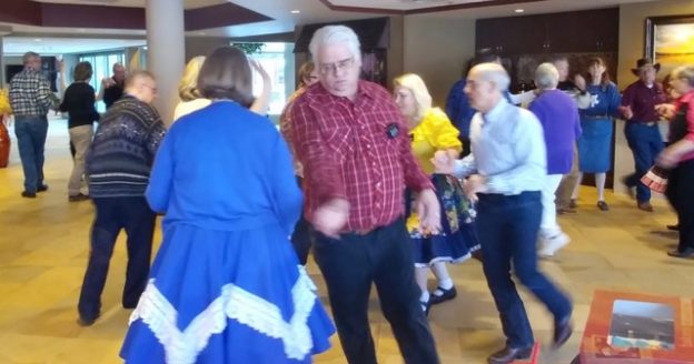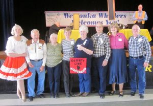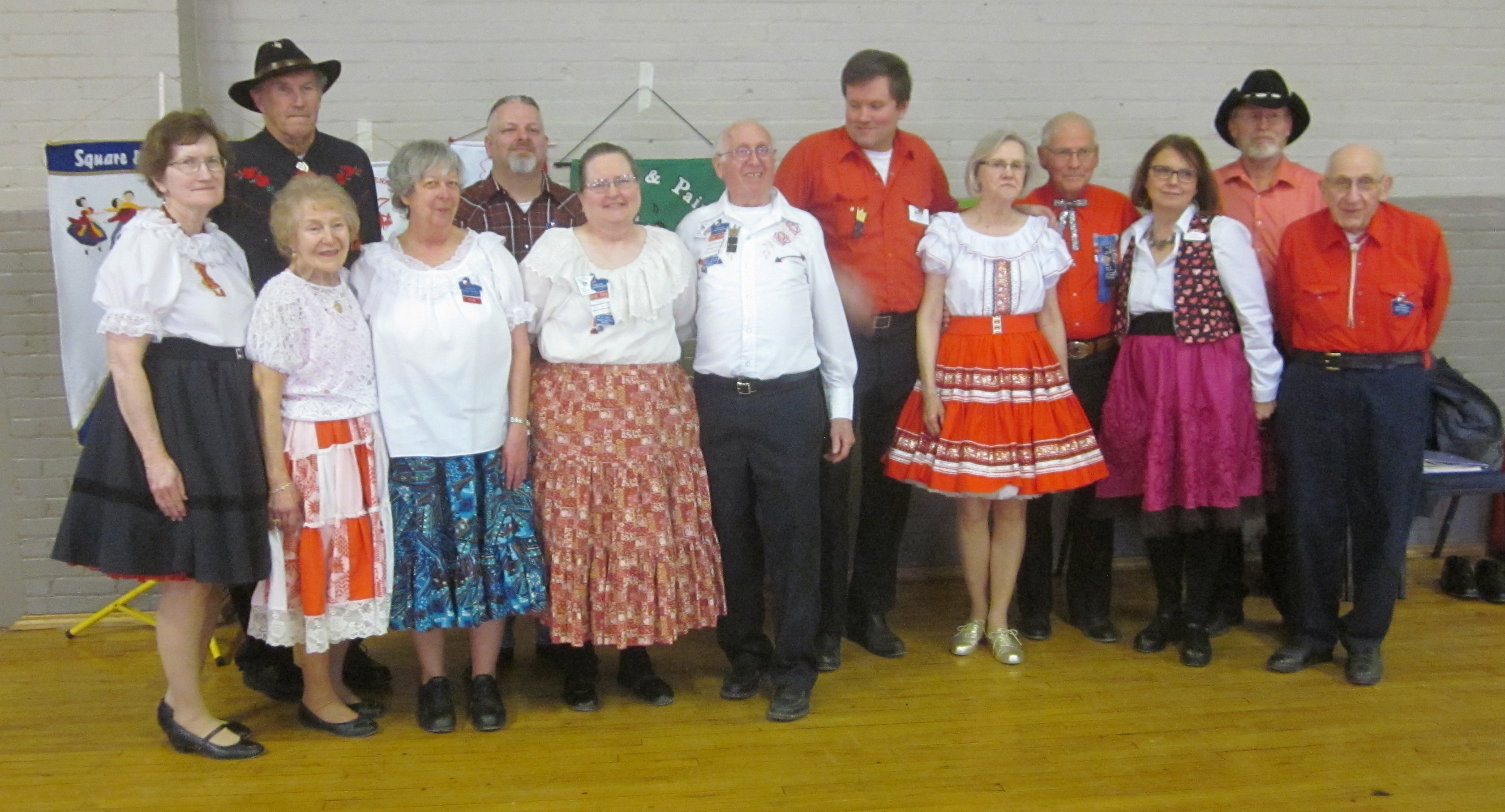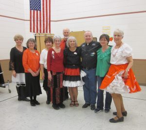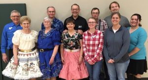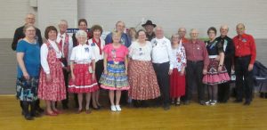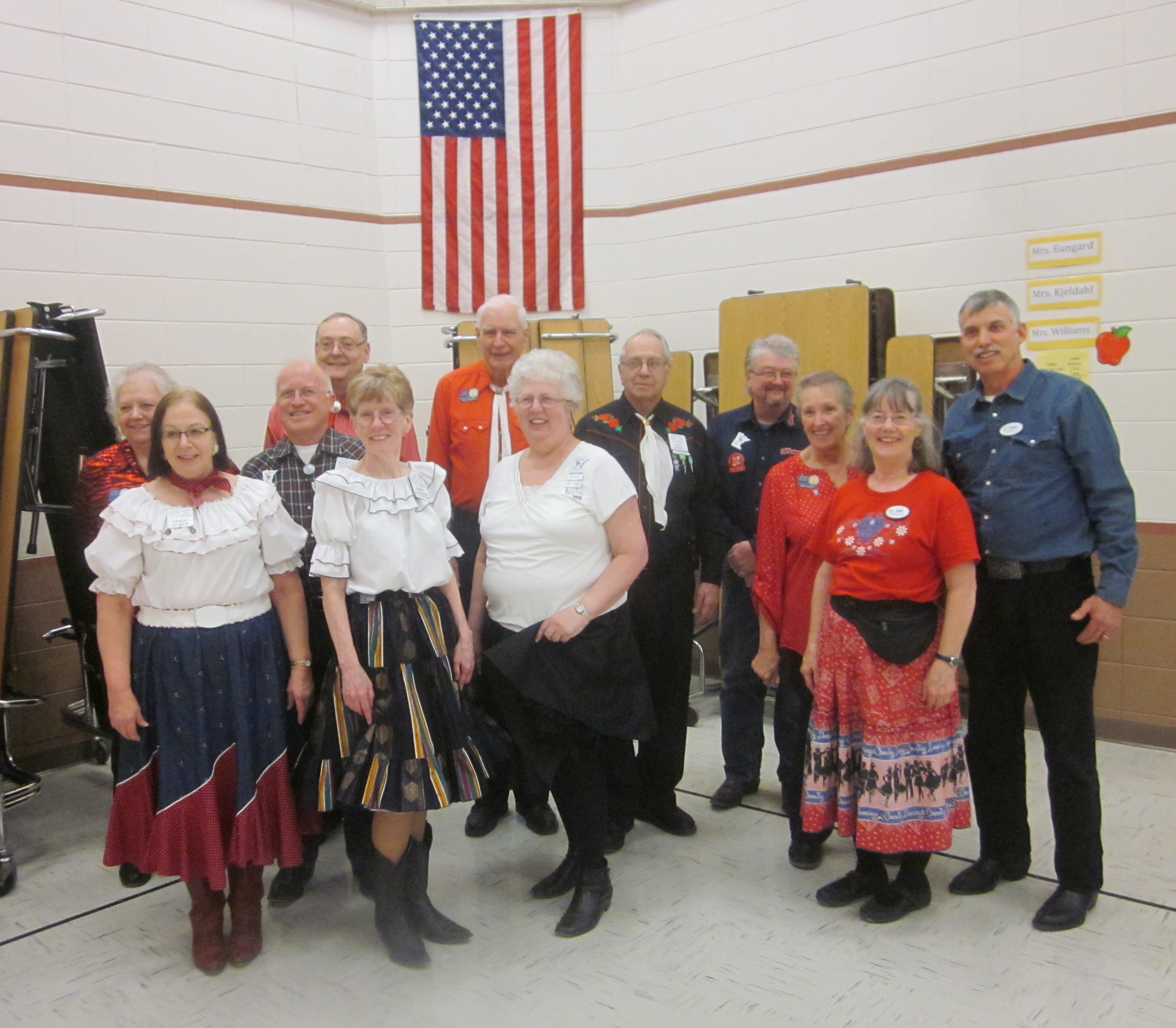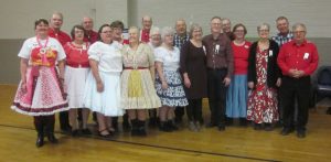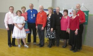 February 11, 2018 – Ar-Dale Dancers “Sweetheart Serenade” Square Dance, White Bear Lake, Caller Mike Hogan, Cuer Ken LaBau. Fifteen plus squares (see photo above) with dancers from Westonka Whirlers, TMF Squares, Square & Twirl, Spares & Pairs, Single Circles, Jolly Promenaders, Hot Foot Stompers, Friendly Twirlers, Dakota Grand Squares, Dan’se P.A.C., Crystal Cross Trailers, County Line Squares, Country Twirlers, Cambridge Corners, and Ar-Dale Dancers were present. Also present were CSD Chair Vince Dahlheimer, SDM Chair LeRoy Elfmann, SDM Education Director Barry Downs, SDM Historian Al Martin, SDM Membership Director Mary Kay Amberg, SDM Marketing Director Dee Scott, Federation Education Linda Biederman-Hink, Westonka Whirlers Queen Katy and King Mark, Single Circles King Mel, Spares & Pairs Queen Cathy and King Brad, Friendly Twirlers Queen Lisa, Cambridge Corners Queen Kim and King Bob, and Ar-Dale Dancers Queen Marleen and King Roger. Spares & Pairs retrieved their banner in addition to the organizations members pictured below.