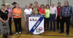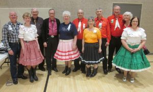 November 24, 2017 – Gospel Plus Square Dance, Hopkins, Callers Tom Allen and Dick Rueter, Cuer Ray Belanger. Five squares with dancers from 10 organizations were present, including groups from Westonka Whirlers (see photo above) and County Line Squares. Also present were SDM Chair LeRoy Elfmann, SDM Secretary Gael Zachman, SDM Education Director Barry Downs, SDM Historian Al Martin, SDM Membership Director Mary Kay Amberg, and Federation At-Large Officers Jerry & Patti Ellingson.