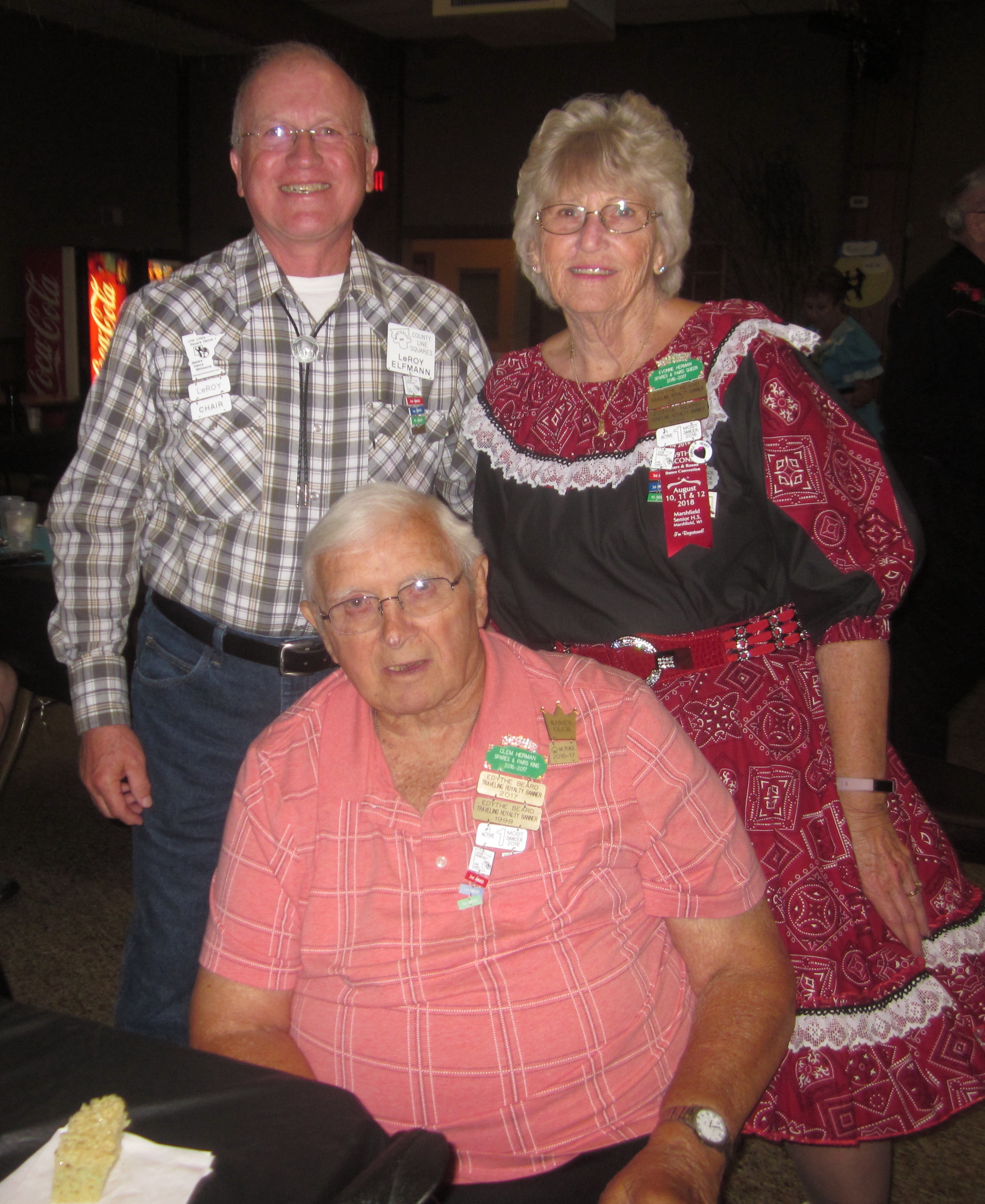August 12, 2017 – Turkey Trotters Square Dance, Worthington, Caller Bryan Bush. Three squares with dancers from County Line Squares, Hot Foot Stompers, Jolly Twirlers, MN-DAK-OWA Squares, Spares & Pairs (Sioux Falls), and Turkey Trotters (see photo above) were present. Also present were County Line Squares Queen Susie and Hot Foot Stompers Queen Rose.