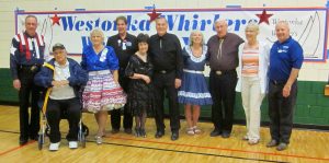 May 30, 2017 – Westonka Whirlers “Red, White, and Blue” Square Dance, Crystal, Callers Dick Rueter and Tom Allen, Cuer Ken LaBau. Nine squares were present as were Hot Foot Stompers Queen RoseMary, County Line Squares Queen Susie and King Jim, CSD Chair Vince Dahlheimer, CSD Secretart Ken Scott, SDM Chair LeRoy Elfmann, SDM Secretary Mary Kay Amberg, SDM Historian Al Martin, and SDM Marketing Director Dee Scott.