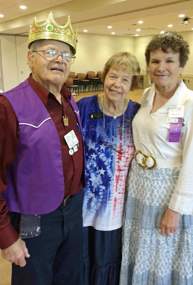 May 30, 2017 – Silver Treads Square Dance, Rochester, Caller Mary Mehus. County Line Squares Queen Susie and King Jim (photo above with Caller Mary Mehus) attended the dance.