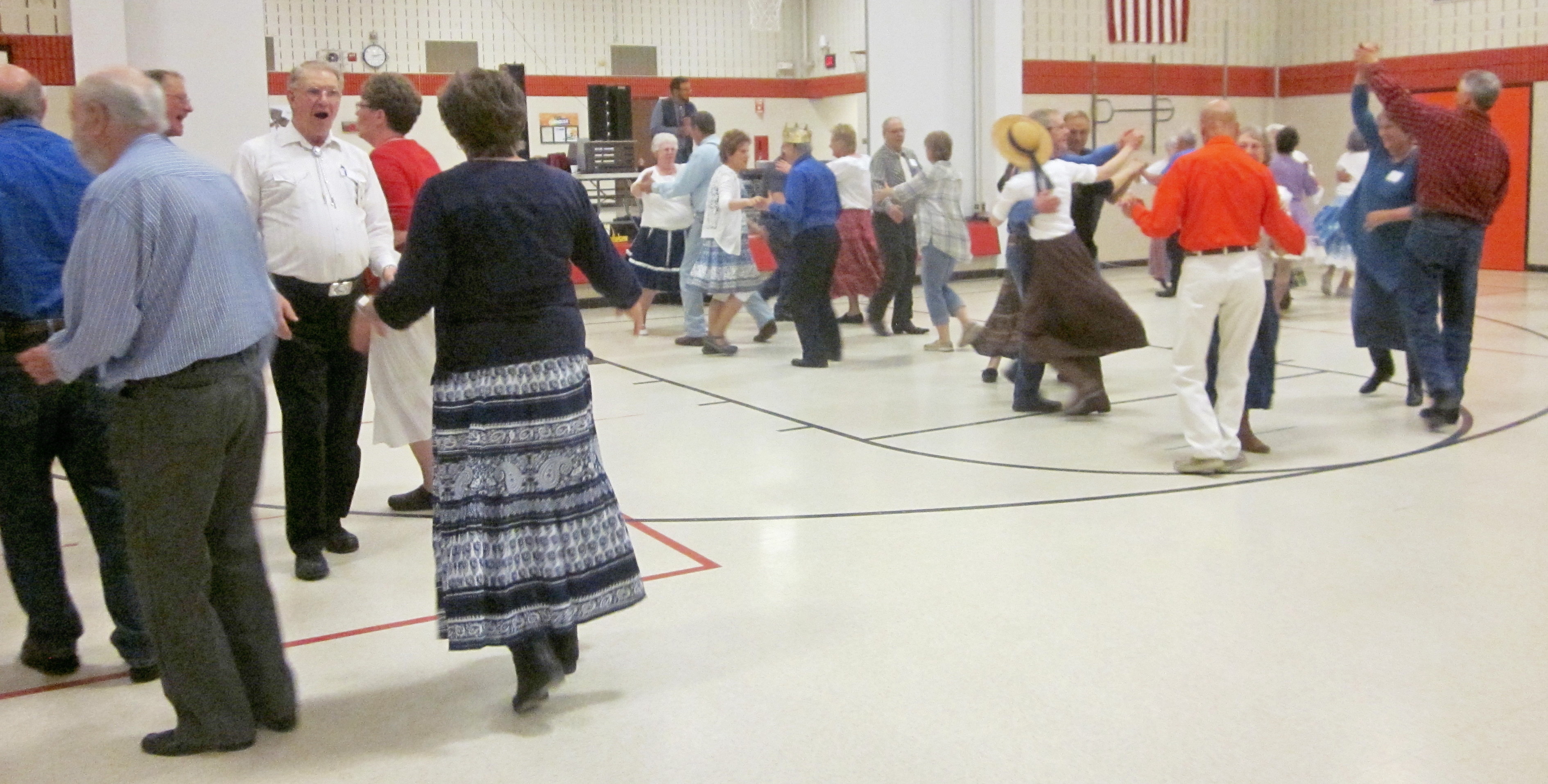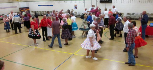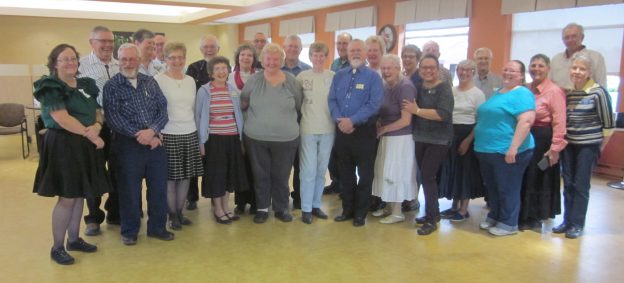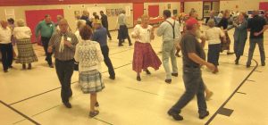 April 30, 2017 – Wadena Whirlaways Square Dance, Staples, Caller Larry Johansen. Three squares with dancers from First City Squares, North Country Plus, Rays Promenaders, Friendly Squares, Wadena Whirlaways, County Line Squares, and South Metro Stars were present (see photo above).