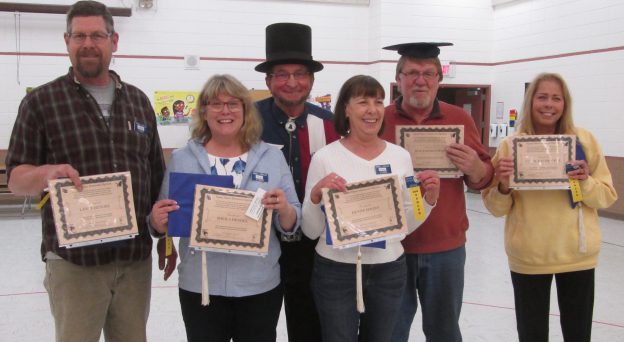 April 26, 2017 – Single Circles Square Dance Graduation, Maple Grove, Caller Abe Maier. Nine new dancers (see photo above – four had schedule conflicts so are not pictured) – congratulations!