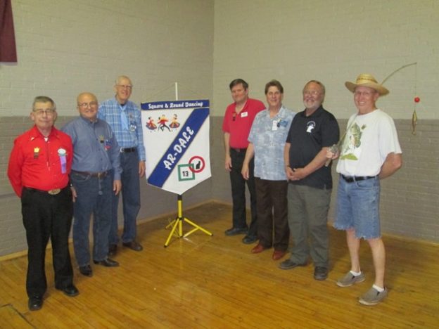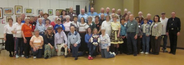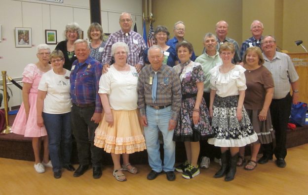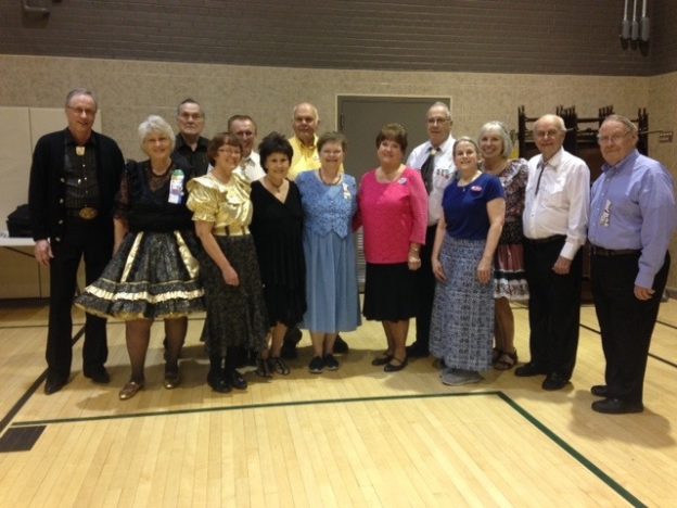 May 7, 2017 – Ar-Dale Dancers “Going Fishing” Square Dance, White Bear Lake, Caller Tom Allen, Cuer Ken LaBau. There were 8 squares from 13 organizations in attendance. Celebrities were SDM Historian Al Martin, CSD Chair Vince Dahlheimer, Federation Member at Large Patti and Jerry Ellingson, Westonka Whirlers Queen Katie and King Mark Otterness, Bloomington Swirlers Queen Eileen Ernst and King Darwin Steffen, and Ar-Dale Dancers Queen Marlene and King Roger Sorenson. Our annual banquet will be held at Gulden’s Restaurant on May 16th and our next dance will be June 4 at 2:00 p.m. Thank you everyone for coming to dance with us. Kings Club members (see photo above) and past and present royalty attended the dance.