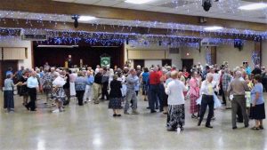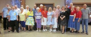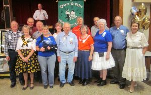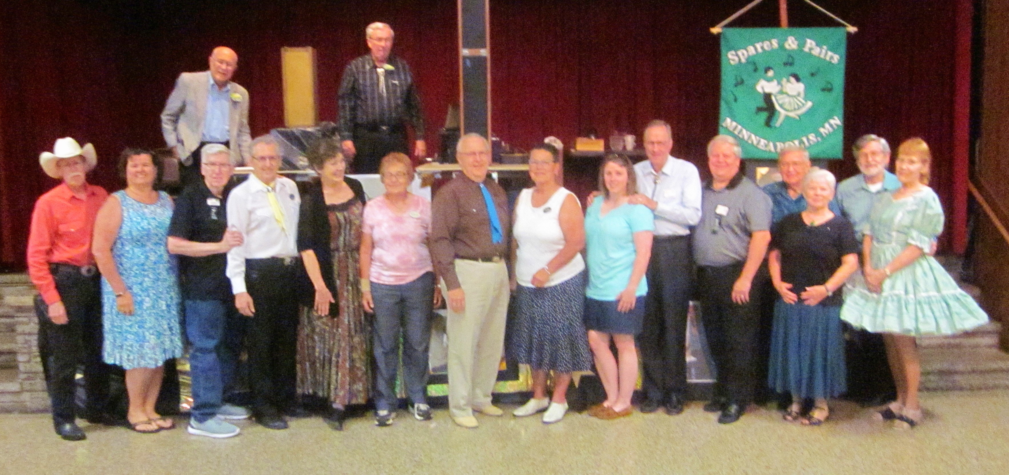 June 28, 2017 – Spares & Pairs “Celebrate” Square Dance, Bloomington, Caller Dick Rueter – 50 years, Cuer Ray Belanger – 47 years (photo above). Twenty-three squares with dancers from 21 organizations were present.