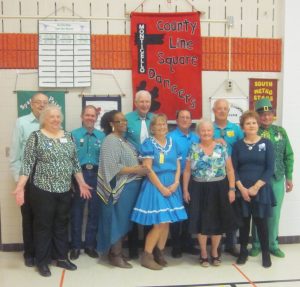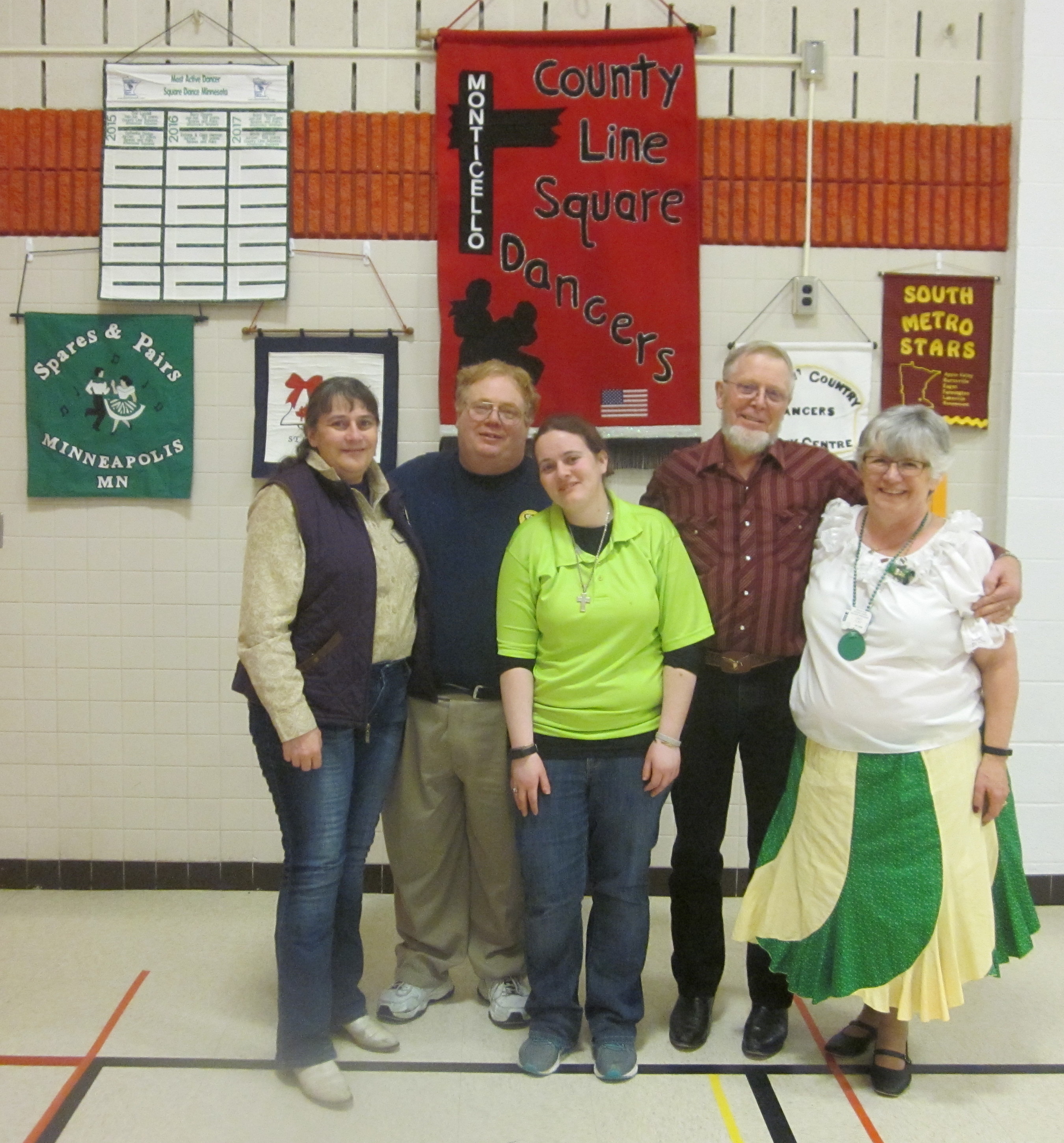 March 9, 2018 – County Line Squares “Shamrock Shuffle” Square Dance, Monticello, Caller Abe Maier, Cuer Sarah Klaphake. Ten squares with dancers from ten organizations (Ar-Dale Dancers, Beaux & Belles, Cambridge Corners, County Line Squares, Hot Foot Stompers, Koronis Nite Owls, Rockin’ Country Dancers, Single Circles, Spares & Pairs, and Westonka Whirlers) were present. Also present were Hot Foot Stompers Queen Rose, County Line Squares Queen Susie, Federation President Michelle Jensen, the RoundUp Advertising Manager Connie Walker-Pearson, the RoundUp Subscription Manager and Enhancin’ Dancin’ Editor Paul Pearson, SDM Chair LeRoy Elfmann, SDM Secretary Gael Zachman, SDM Historian Al Martin, and SDM Marketing Director Dee Scott.