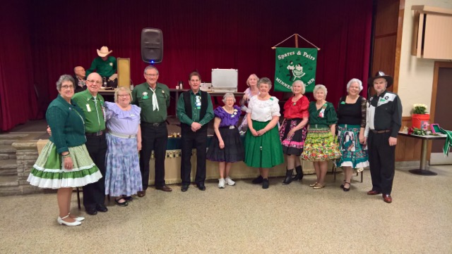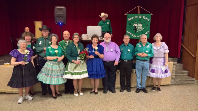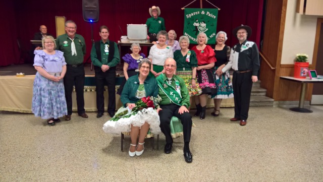 April 4, 2018 – Spares & Pairs “King and Queens Night” Square Dance, Bloomington, Caller Larry Fruetel, Cuer Ray Belanger. Spares & Pairs new Queen Jennfier and King Barry are pictured above.
