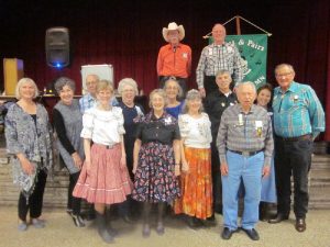 April 11, 2018 – Spares & Pairs Square Dance, Bloomington, Caller Larry Fruetel, Cuer Ray Belanger. Six squares with dancers from Ar-Dale Dancers (see photo above), County Line Squares, Dakota Grand Squares, South Metro Stars, and Westonka Whirlers were present. Also present were Ar-Dale Dancers Queen Tami and King Rick, County Line Squares Queen Gael and King Doug, Spares & Pairs Queen Jennifer and King Barry, SDM Chair LeRoy Elfmann, SDM Secretary Gael Zachman, SDM Treasurer Deb Hollimon, SDM Education Director Barry Downs, SDM Historian Al Martin, and SDM Marketing Director Dee Scott.