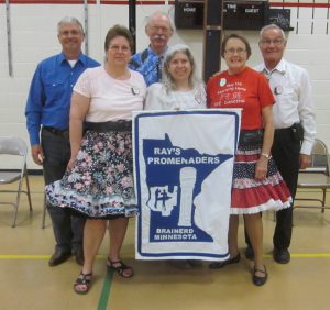 May 6, 2018 – Rays Promenaders “Paul Bunyan Jomboree” Square Dance, Baxter, Callers Larry Johansen, Andy Flint, Myron Hollatz, Phil Miller, and Abe Maier, Cuer Donna Stone. Eight squares with dancers from County Line Squares, First City Squares, Friendly Squraes, Koronis Nite Owls, Pairs & Squares, Rays Promenaders, Rockin’ Country Dancers, ‘Tasca Twirlers, and Wadena Whirlaways (see photo above) were present.