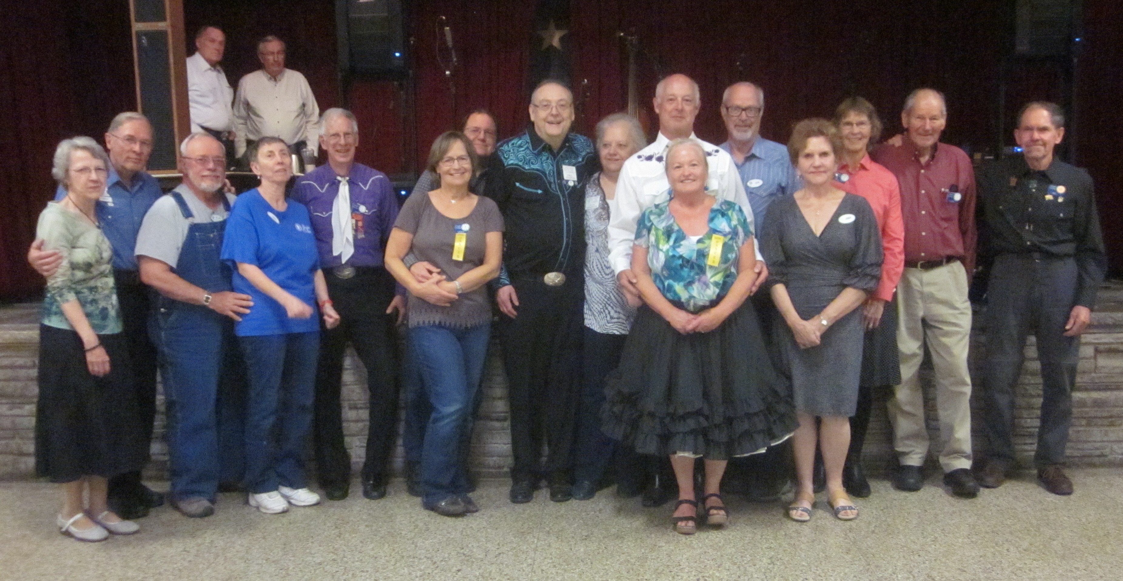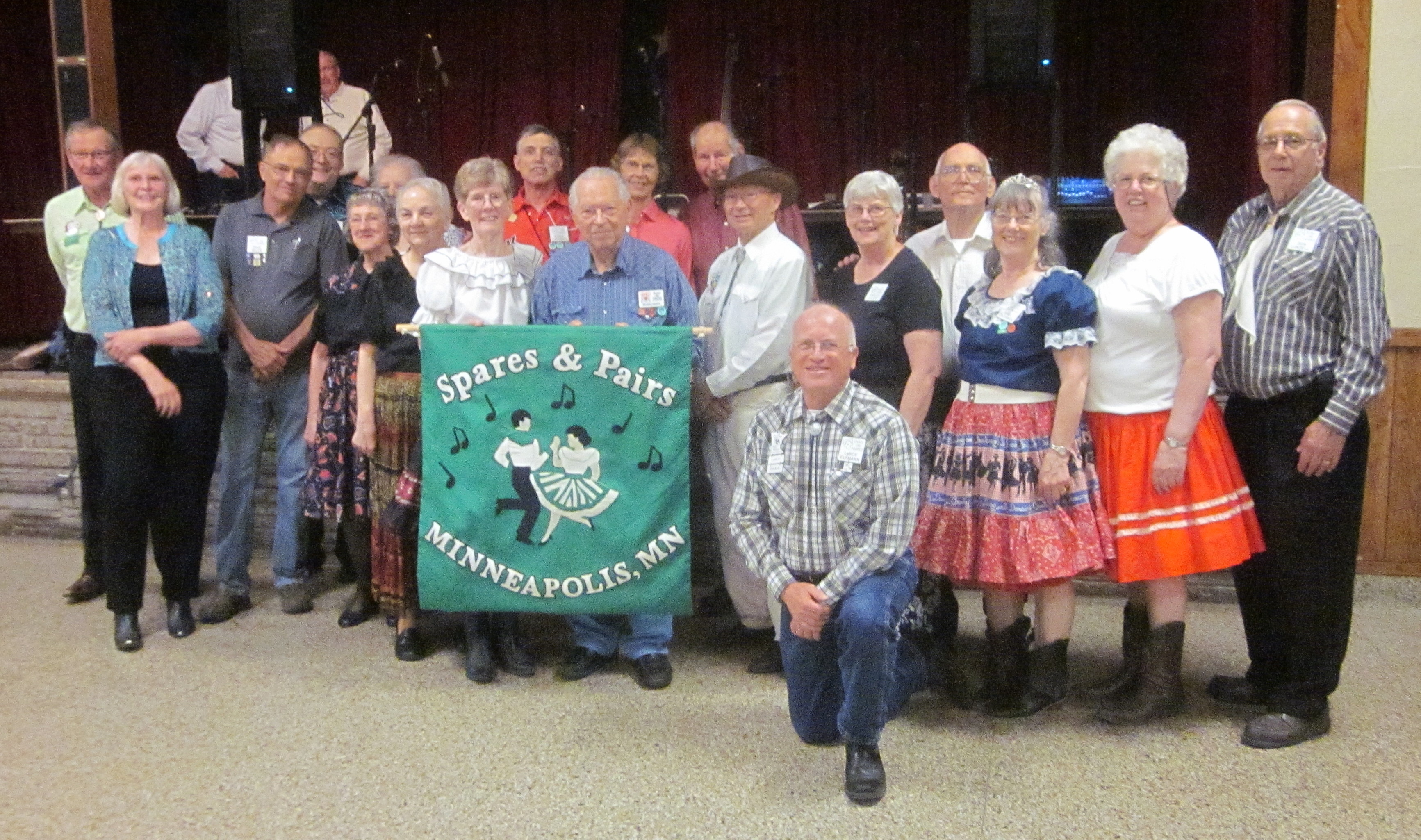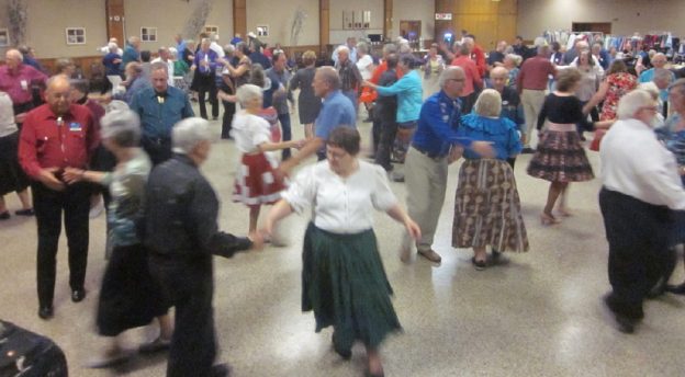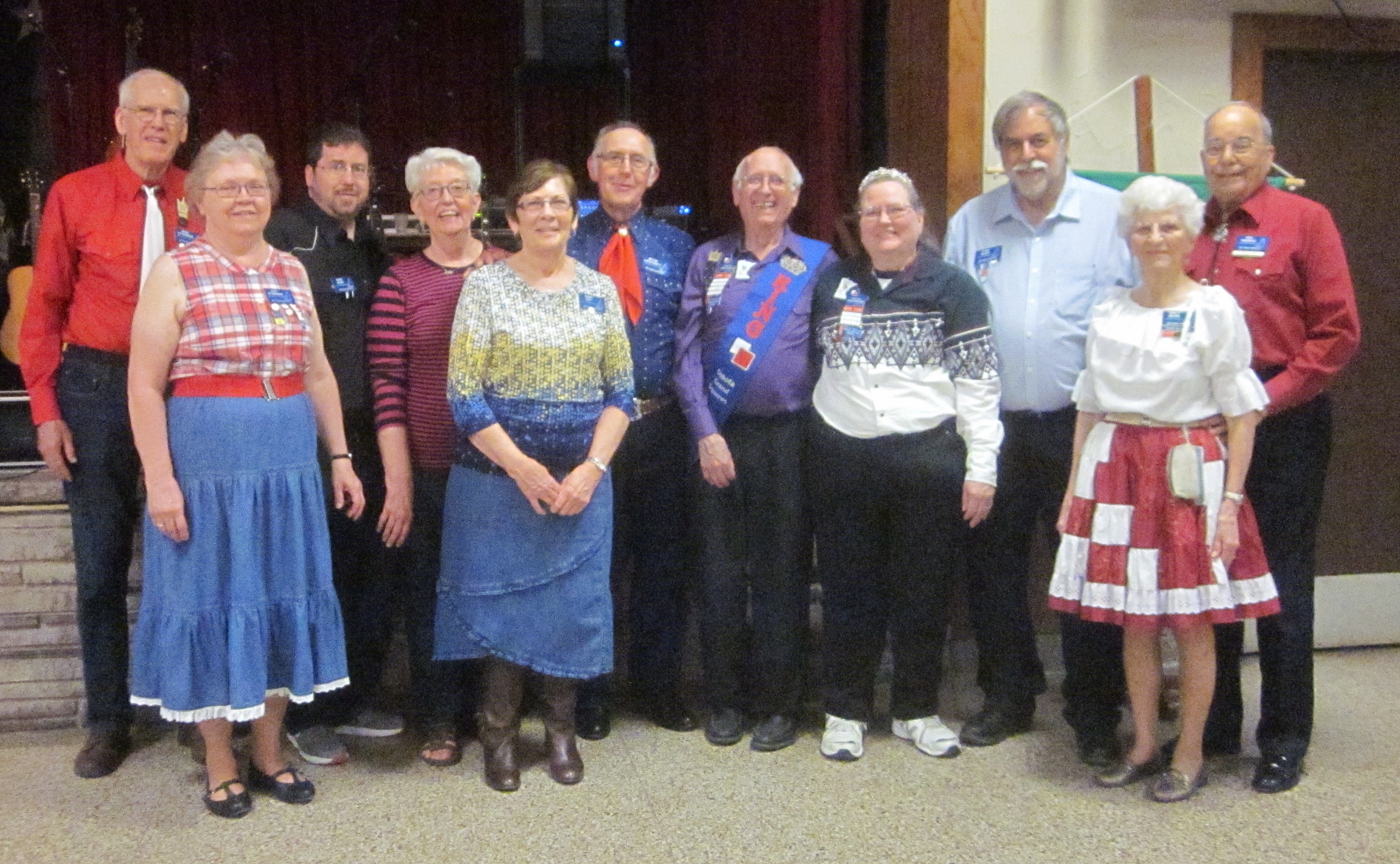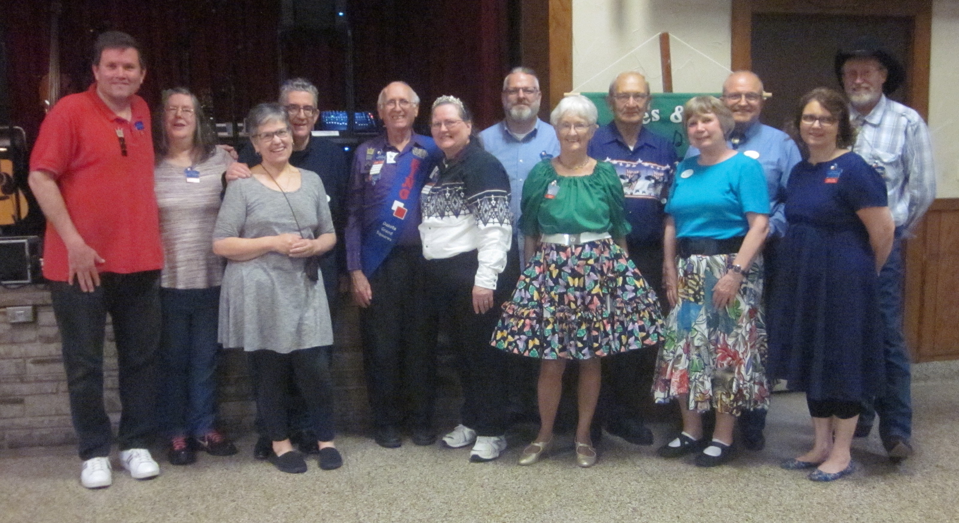 May 9, 2018 – Spares & Pairs “Timbre Junction Bluegrass Concert” Square Dance, Caller Dick Rueter with Timbre Junction, Cuer Ray Belanger. Over 14 squares were present (some are in the photo above) with dancers from Ar-Dale Dancers, Beaux & Belles, County Line Squares, Dakota Grand Squares, Danc’n Singles (Smyrna, Georgia), ETTA Square & Rounds, Hot Foot Stompers, Single Circles, Spares & Pairs, Wandering Wheels, and Westonka Whirlers. Also present were Ar-Dale Dancers Queen Tami and King Rick, County Line Squares Queen Gael and King Doug, Dakota Grand Squares Queen Rose Marie and King John, Single Circles King Mel, Spares & Pairs Queen Jennifer, USDA Plains Region Vice Presidents Judy and Floyd Engelhardt, CSD Chair Vince Dahlheimer, SDM Chair LeRoy Elfmann, SDM Secretary Gael Zachman, SDM Membership Director Mary Kay Amberg. Other callers and cuers present were Tom Allen, Andy Flint, Larry Fruetel, Robin Fryman, Denise Heinz, Ken LaBau, Rick Larson.