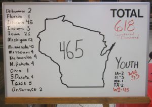 August 9-12, 2018 – 59th Wisconsin Square and Round Dance Convention, Marshfield, Featured Caller Mike Hogan. Six hundred eighteen dancers were present (some are in the photo above taken during the Sunday morning session) from Delaware, Florida, Illinois, Indiana, Michigan, Minnesota, Missouri, Nebraska, North Dakota, Ohio, South Dakota, Texas, Wisconsin, and Ontario, Canada.