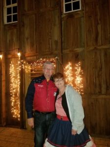 Pine Island September 29, 2018 – Pine Island Square Dance Demo, Pine Island, Caller Monte Guenzler. Barn dance for beginners photo above. Caller Monte Guenzler with Patty.