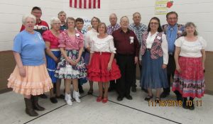 November 16, 2018 – Single Circles “Bet on Your Vet” Square Dance, Maple Grove, Caller Abe Maier, Cuer Jane Simpson. Veterans present are in the photo above.
