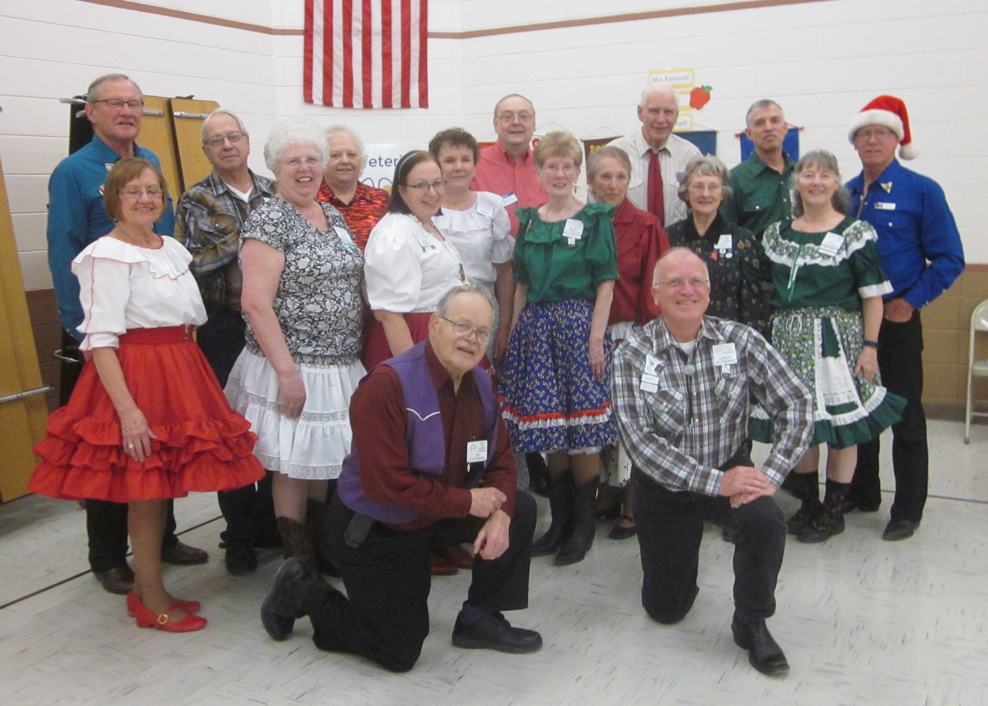December 7, 2018 – Single Circles “Saint Nick is Back in Town” Square Dance, Maple Grove, Caller Roger McNeil, Cuer Bernadette McNeil. Dancers (some are in the photo above) from Ar-Dale Dancers, County Line Squares, Crystal Cross Trailers, Dakota Grand Squares, Friendly Squares, Hot Foot Stompers, South Metro Stars, Spares & Pairs, Valley Stars, and Westonka Whirlers danced with Single Circles. Present were Spares & Pairs Queen Jennifer and King Barry, County Line Squares Queen Gael and King Doug, CSD Chair Vince Dahlheimer, SDM Vice Chair Barry Downs, SDM Treasurer Gael Zachman, SDM Executive Director LeRoy Elfmann, SDM Historian Al Martin, SDM Marketing Director Dee Scott, and SDM Membership Director Mary Kay Amberg. Westonka Whirlers retrieved their banner and County Line Squares claimed a Single Circles banner.