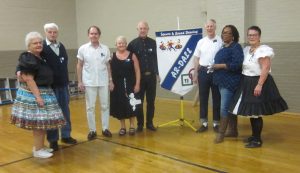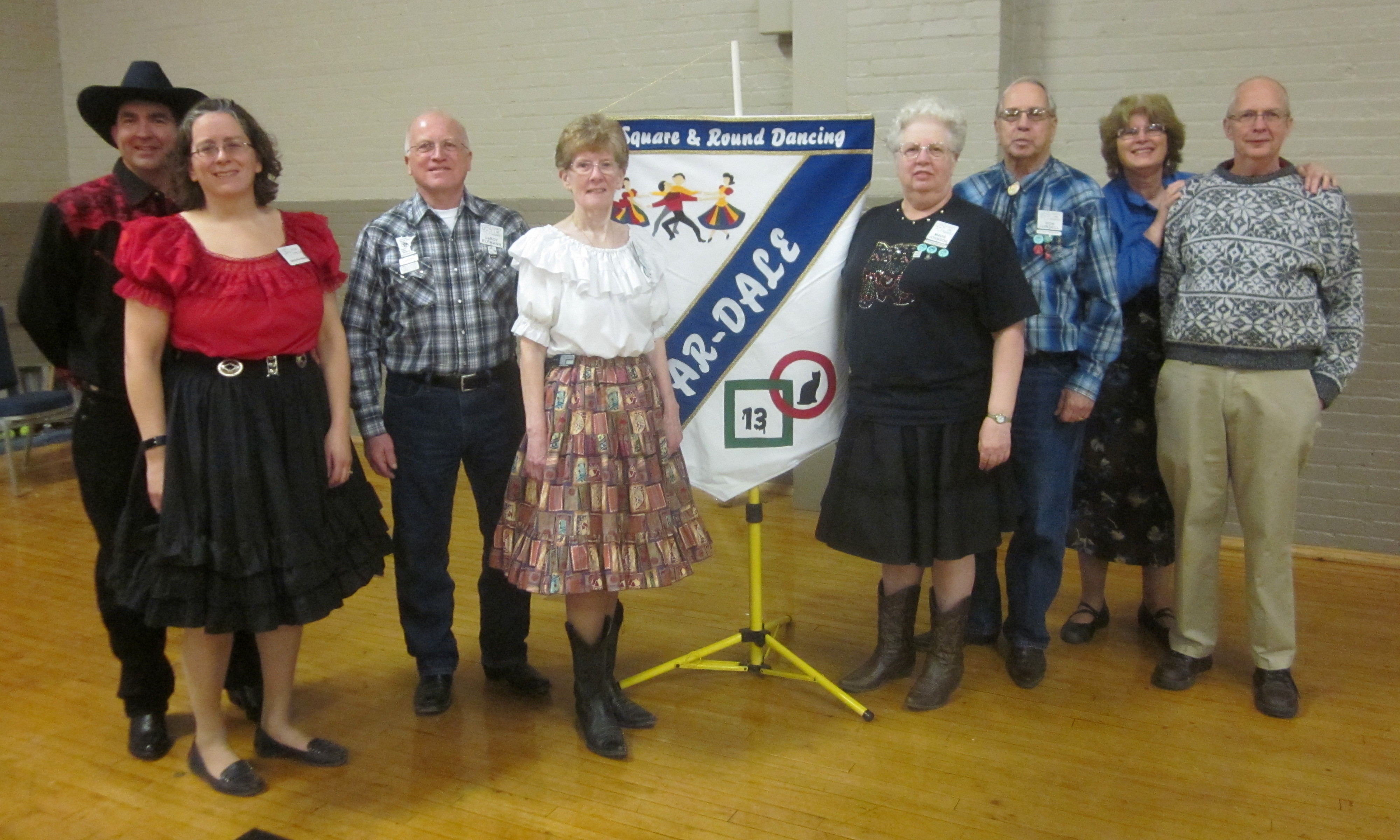 January 13, 2019 – Ar-Dale Dancers “Fifties” Square Dance, White Bear Lake, Caller Larry Fruetel, Cuer Ken LaBau. Dancers from Westonka Whirlers (already have an Ar-Dale Dancers banner – see photo above), Spares & Pairs, South Metro Stars, Single Circles, Hot Foot Stompers, Friendly Twirlers, Dan’se P.A.C., Dakota Grand Squares, County Line Squares, Cambridge Corners, and Ar-Dale Dancers were present. Also present were Friendly Twirlers Queen Michelle, Ar-Dale Dancers Queen Tami and King Rick, CSD Chair Vince Dahlheimer, CSD Treasurer Bernadette McNeil, SDM Executive Director LeRoy Elfmann, SDM Historian Al Martin, SDM Marketing Director Dee Scott, and SDM Membership Director Mary Kay Amberg.